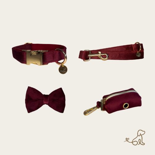 Ga voor de complete look met deze elegante set bestaande uit een halsband, bijpassende strik, poepzakje en riem. De basis van het grootste deel van de set is uitermate sterk textiel om veiligheid en een lange levensduur te garanderen. Alle onderdelen van de set zijn afgewerkt met hoogwaardig suède voor het ultieme comfort en natuurlijk een chique look. De gouden sluitingen zijn gemaakt van robuuste metalen en voorzien van een betrouwbare coating waardoor deze langdurig hun kwaliteit behouden en bestand zijn tegen slijtage.